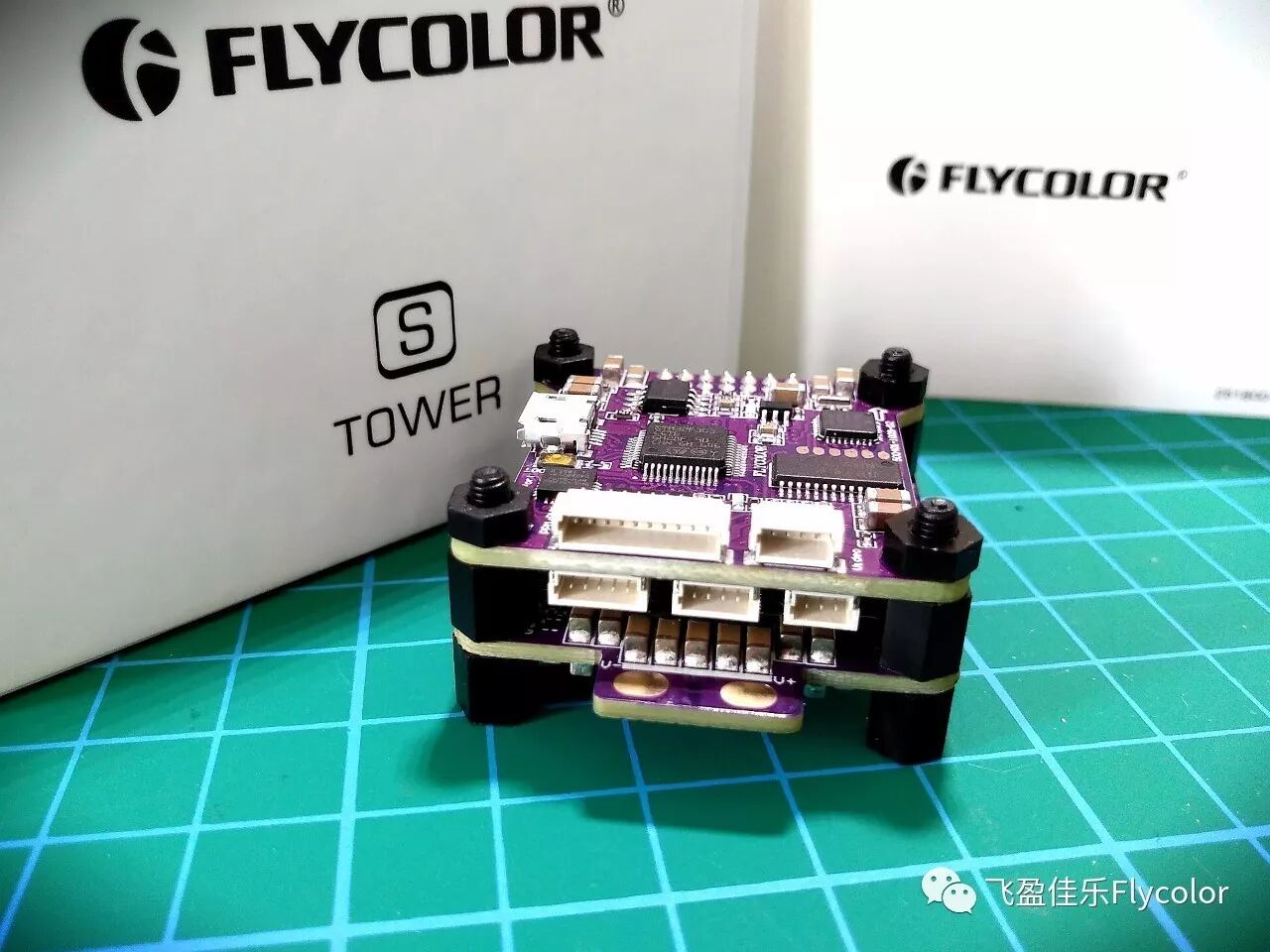 Raptor S-Tower 40A依然采用极简的两层塔式结构,上层为F3飞控,下层为四合一电调,36mm×36mm的标准尺寸,支持2-4S电池,恒定电流40A(峰值电流50A),使用BLHeli-s固件,支持Dshot / Multishot / Oneshot 、支持电机转数高达50万转/分钟,支持PPM、PWM、SBUS等最主流遥控/接收模式。